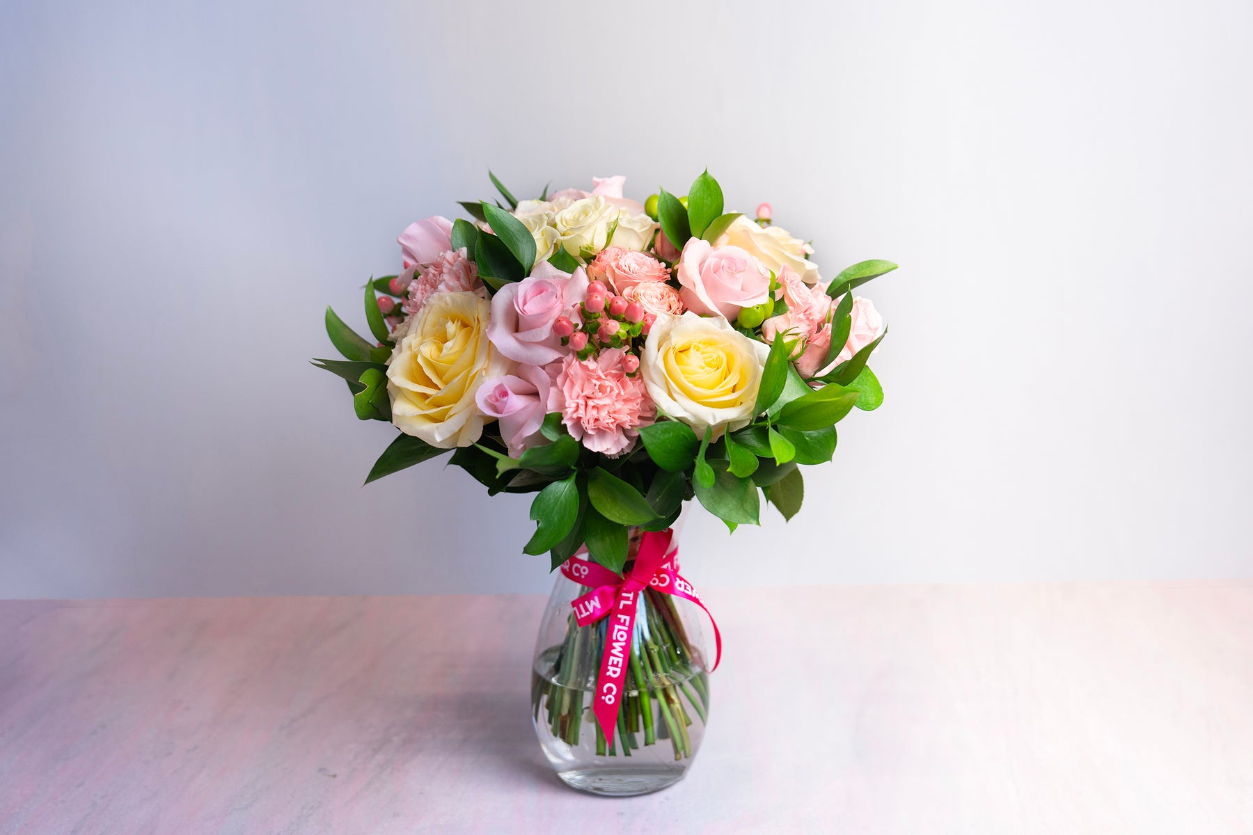 We use only fresh, seasonal flowers, and every bouquet is made to order. While our florists do their best to match the photo shown, some blooms or colours may be substituted based on availability. No matter what, your bouquet will always be fresh, beautiful, and made to bring joy to whoever receives it.