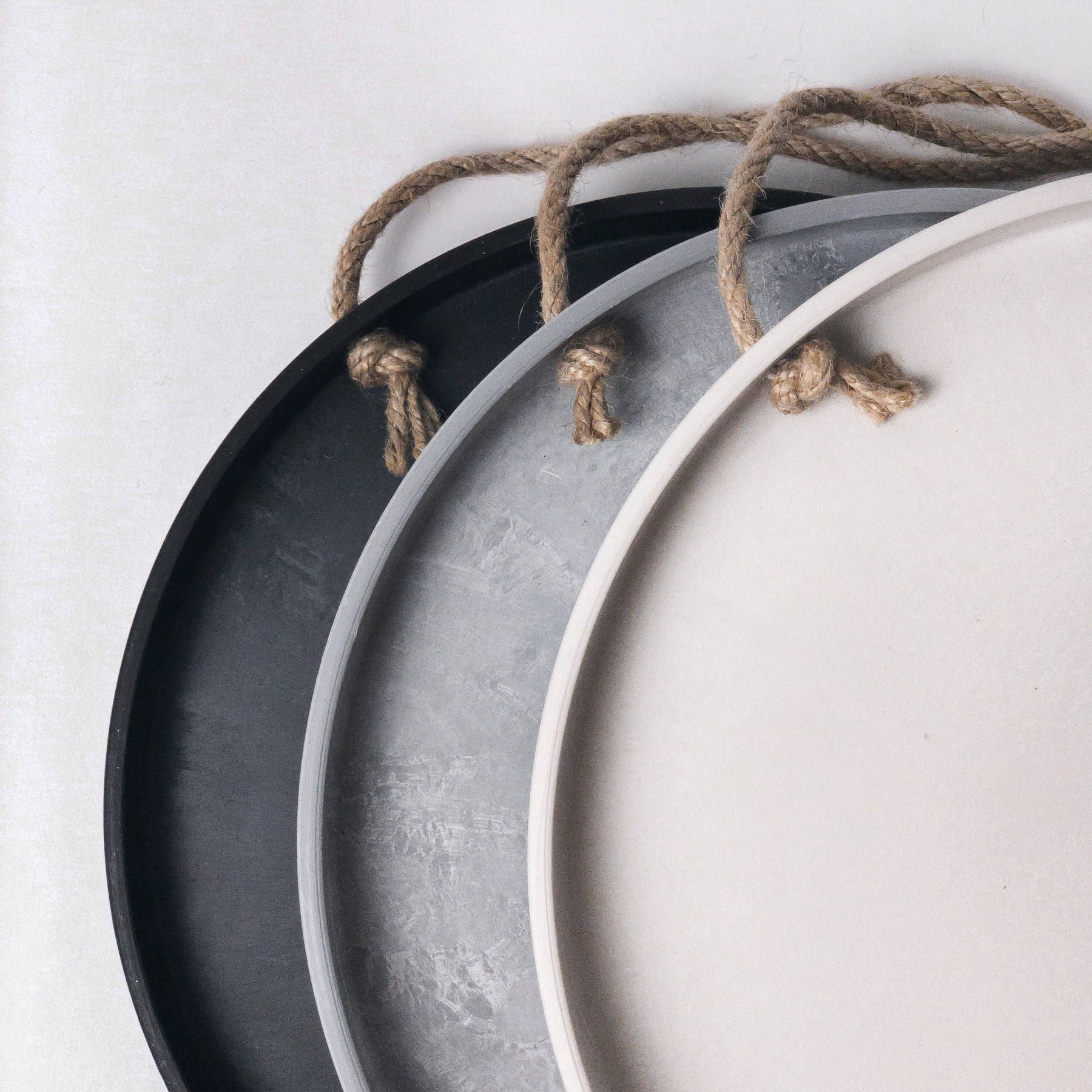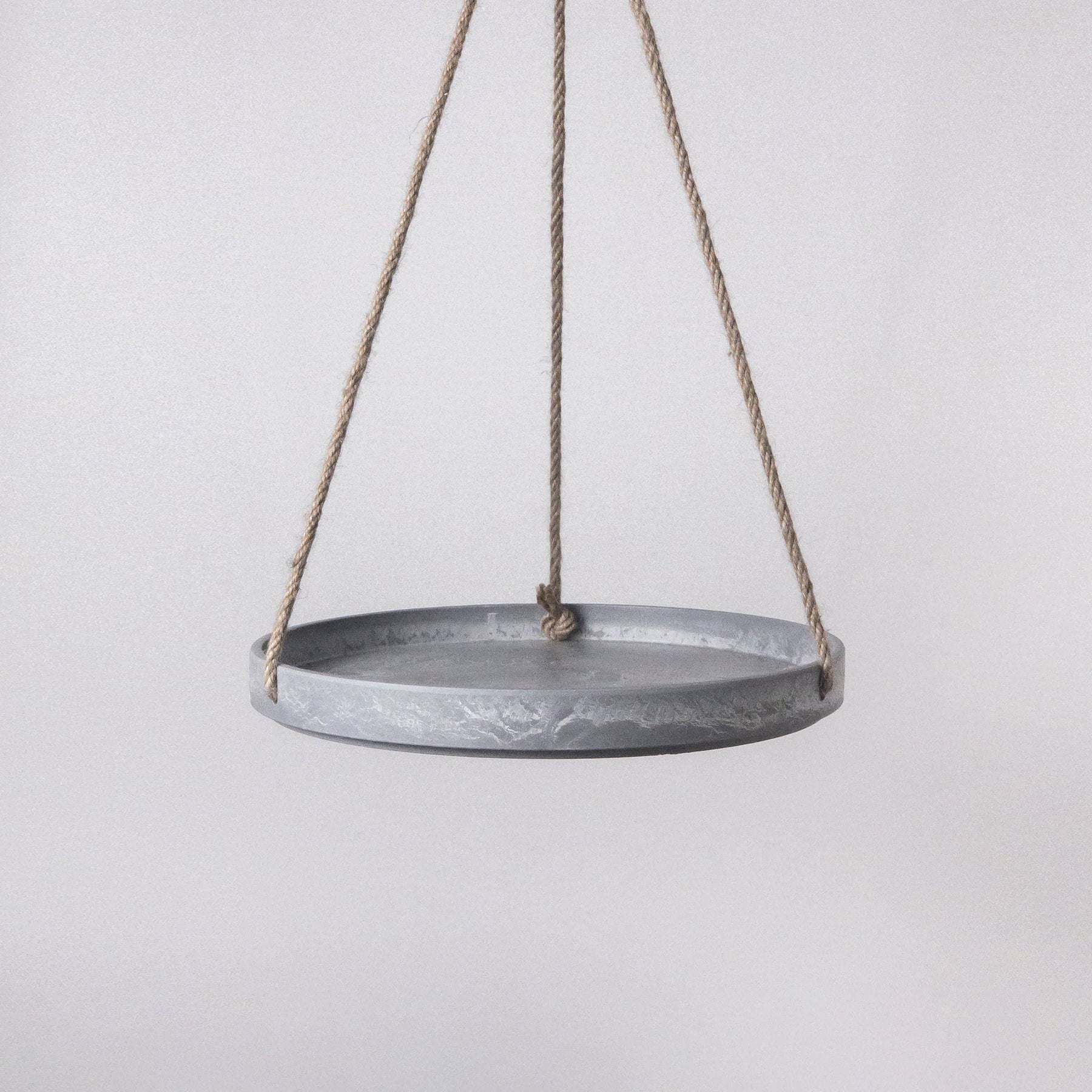 Our 10” Signature Stone hanging tray is a versatile and creative way to style your plants. Mounted on the wall or ceiling, the hanging tray is great for displaying individual small to medium-size houseplant, pairing, or grouping together a variety of nursery plants. Hanging plants can easily be swapped out for a new, refreshing look based on mood, aesthetics, and preference. This product has been transformed from recycled plastics combined with materials like natural stone and wood into a green composite material. Materials Recycled Plastic | Natural Stone | Wood Dust Porous Hand Finished Details Indoor/Outdoor Use Frost Proof -50C - 100C Black S Hook Included Measurement 10.7in diameter x 1.2in high Rope Length: 20in tall