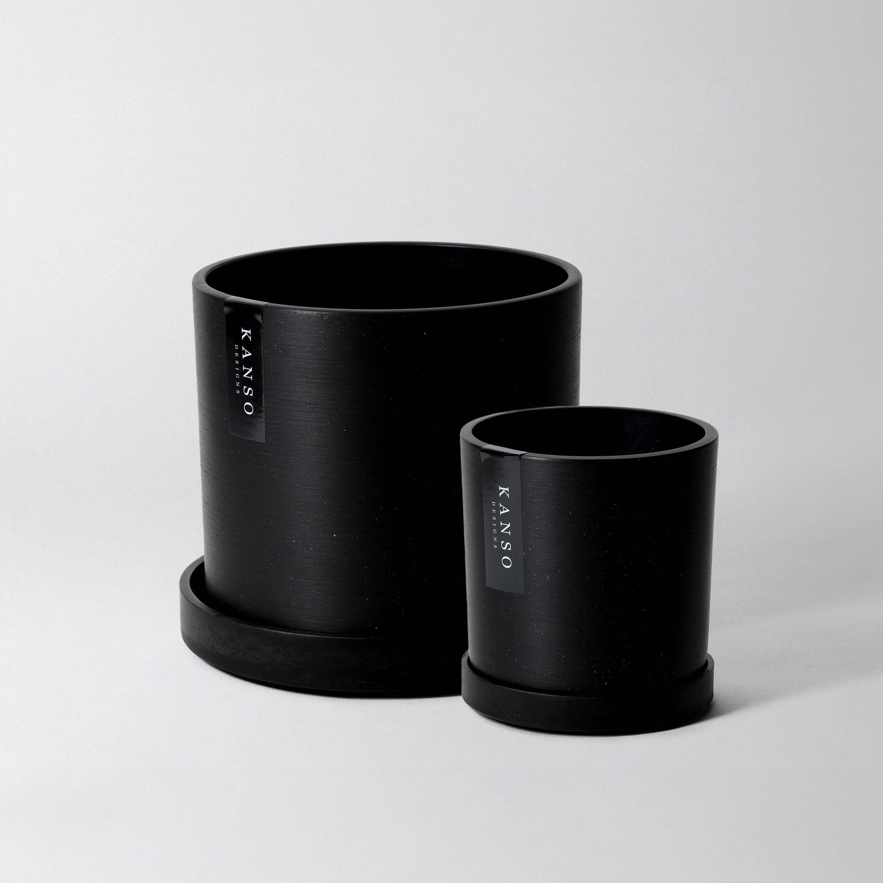 These planters offer a modern update to the traditional earthy tones. Elevate your aesthetic, & add a unique contrast to your plant collection. 7” planter pots come in 4 different colorways. Buy in a two set or singles. Each planter has a drainage hole, plug, & matching saucer.  Made with recycled plastics, the finished product is combined with materials like natural stone and wood to completely change the nature of plastic into a green composite material. As each planter is the result of handcrafted finishes, each item contains its own personality & unique details. SINGLE OR TWO SET COMBO * Recycled Plastic | Natural Stone | Wood Dust * Porous   * Hand Finished  7" Planter Details Drainage hole & plug: Yes Indoor/Outdoor Use Frost Proof -50C - 100C Planter Measurements: 7in Width x 6.3in Height Saucer Measurements: 5.5in Diameter x 0.75in Height 4" Planter Details Planter Measurements: 4.75in Width x 4.75in Height Saucer Measurements: 4.65in Diameter x 0.7in Heigh