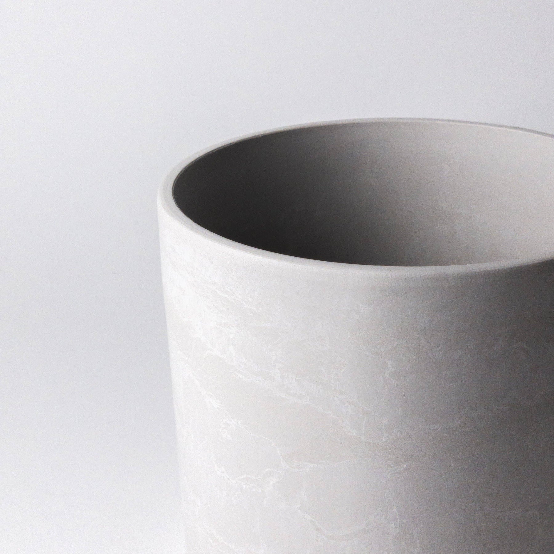 This traditional planter has been marbled with a natural white stone finish to give it a natural concrete look. It is perfect for any medium-size plant. For a more modern look, pair with a Ficus Lyrata. Made with recycled plastics, the finished product is combined with materials like natural stone and wood to completely change the nature of plastic into a green composite material. As each planter is the result of handcrafted finishes, each item contains its own personality and unique details. Materials Recycled Plastic | Natural Stone | Wood Dust Porous Hand Finished Details Drainage hole: Yes Indoor/Outdoor Use Frost Proof -50C - 100C Plant not included** Planter Measurements: 6.75in Width x 6.3in Height (6.4in Opening Diameter | 4.75 Bottom Diameter) Saucer Measurements: 7.5in Diameter x 1.25in Height