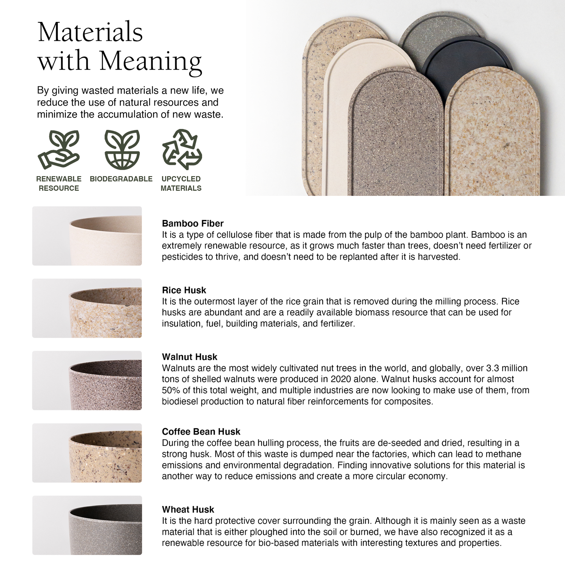 We’ve reimagined timeless shapes into a collection of natural and simple oval decor trays. The understated tones complement any color palette of your choice and is a perfect jewelry display dish, keys tray, candles and mini planter holder. This durable and natural-looking accessory has been transformed from agricultural by-products and waste materials. Materials * Bamboo Fibre, Coffee Bean Husk, Wheat Husk, Nut Husk * Non-Toxic Formaldehyde-Free Resin * Hand Finished  Details   * Indoor Use Only * Plants & pots not included**  * 8.5in long x 4in wide x 0.5in high