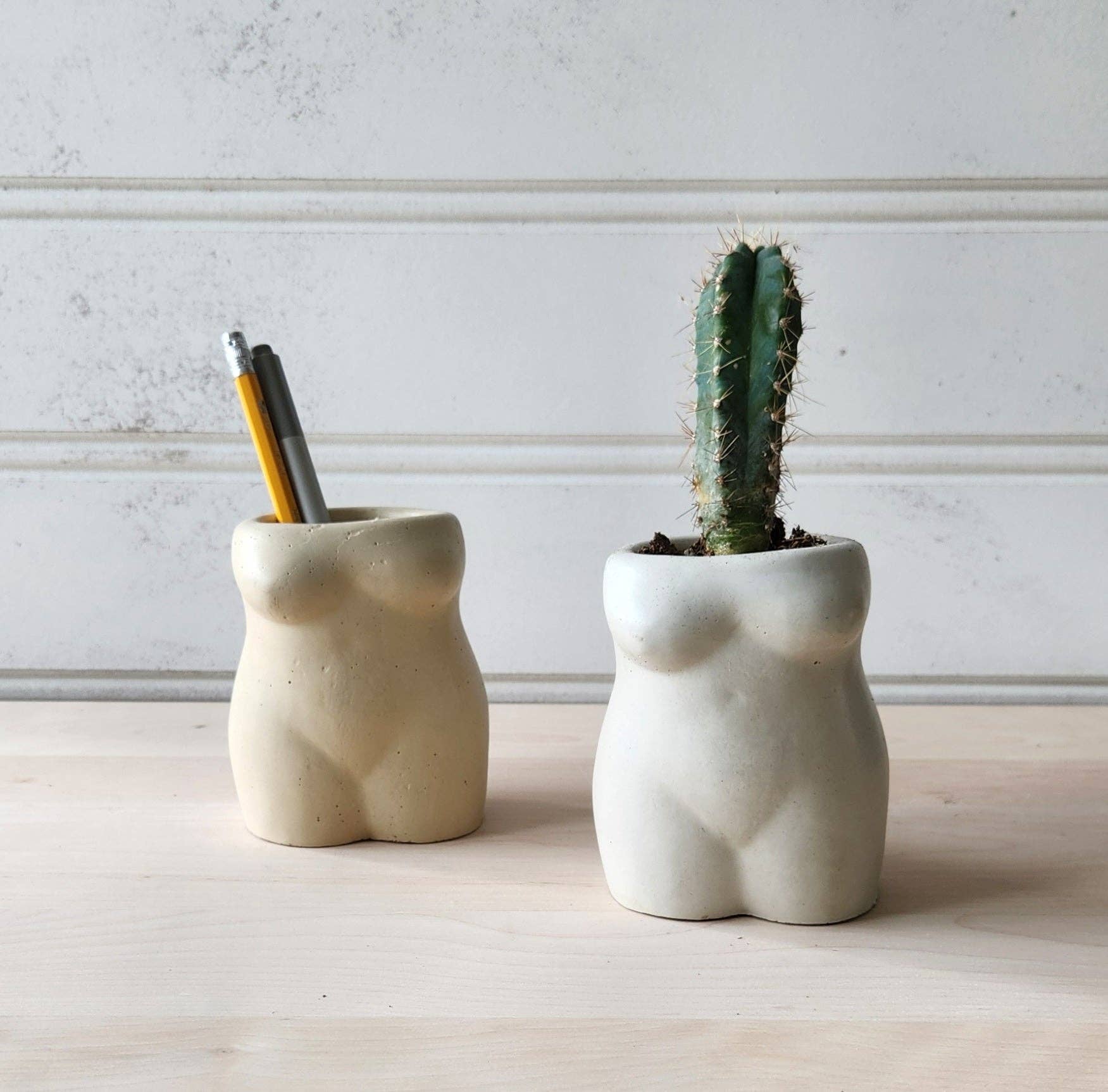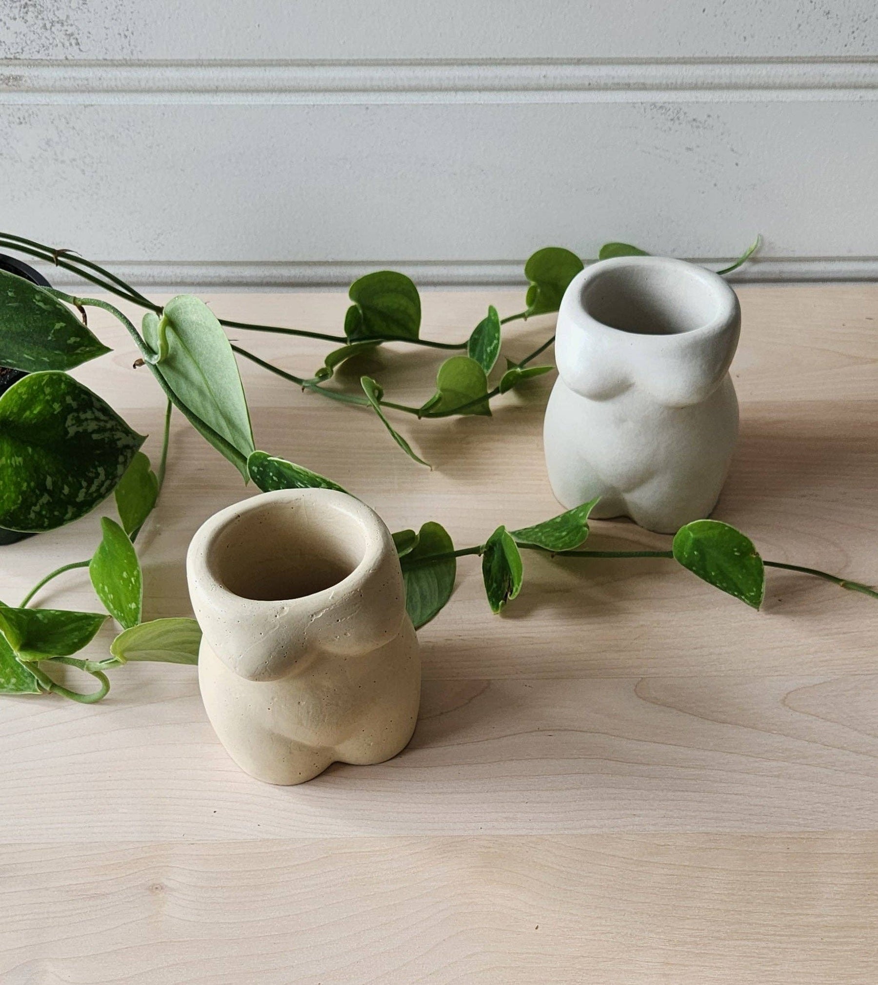 Display the beauty of body positivity with our Femme Planter - Vase The unique shape allows for versatile function. Great for florals, small plants or as a working desktop vessel. Dimensions: Outside: 3" l x 3.25" w x 4.25" h Inner: 2.25" l x 1.75" w x 3.75" deep