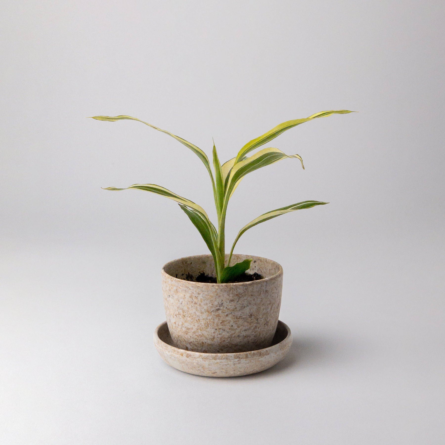 This organically textured mini pot made with natural rice husk is ideal for 2" nursery plants and succulents. The compact size is excellent for limited-spaces such as bedrooms, desks, coffee tables, and offices. The natural tone of the pot is so versatile and complements any type of plant. Our durable and natural-looking plant container has been transformed from agricultural by-product and waste materials. Equipped with a drainage hole with a saucer, this mini pot is a perfect starter for plant beginners. Materials Rice husk Non-Toxic Formaldehyde-Free Resin Porous Hand Finished Details Drainage hole: Yes Drainage Dish Indoor Use Only Plant not included** Planter Measurements: 3in Width x 2.25in Height (3in Opening Diameter | 2.25in Bottom Diameter) Dish Measurements: 3.5in Width x 0.75in Height